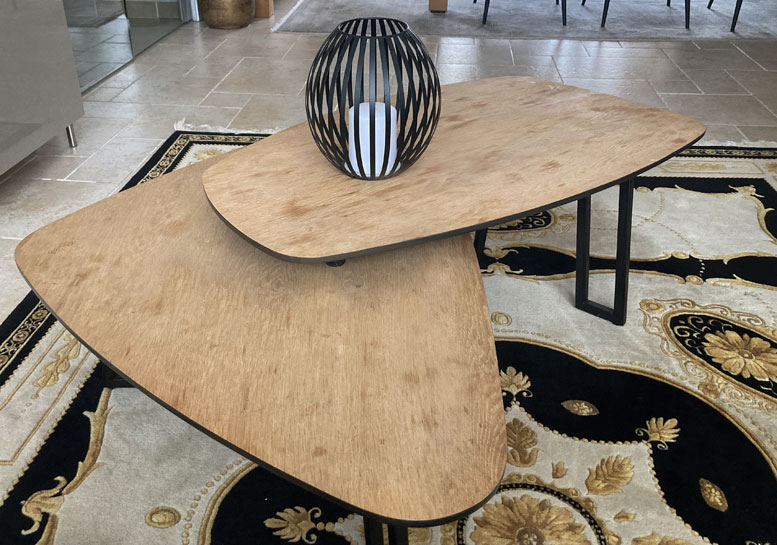 KOOPJE - living - meubel Verberckmoes Design Salontafel-set ( aankoop=€419 ) bestaande uit 2 delen. Zwart metalen stijlvolle design pootjes.